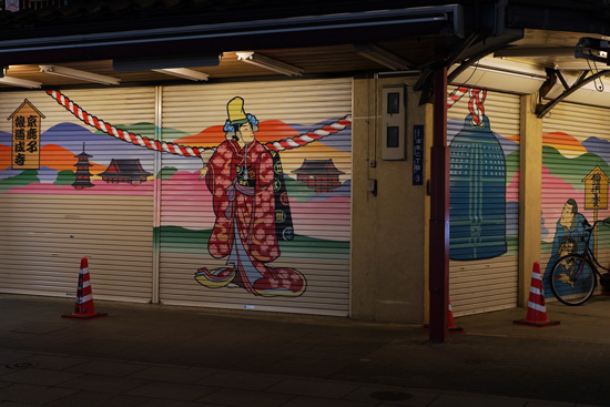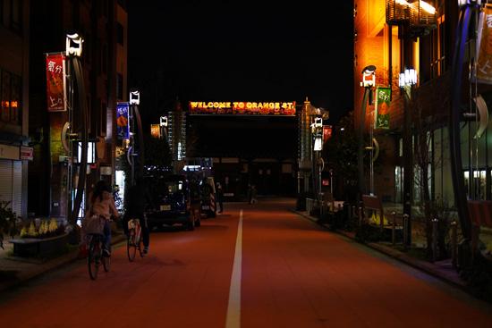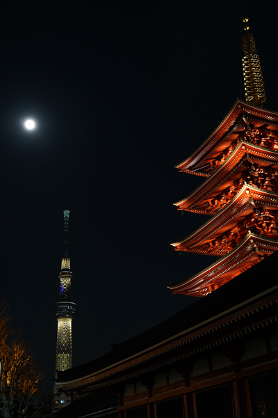 De nuit le Sensō-ji est déserté. La grande Nakamise-dōri est vide et les stores des boutiques sont baissés. Seules les lumières viennent donner de la vie au lieu. Mais cette ambiance à la fois mystique et irréelle (le contraste entre le jour et la nuit étant si fort qu’on y croit à peine) est sans aucun doute ma préférée.