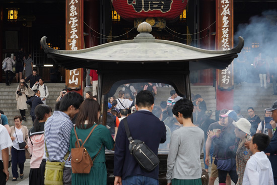 De jour le Sensō-ji est pris d’assaut. La grande avenue Nakamise-dōri est noire de monde, et on y croise de nombreuses personnes vêtues de magnifiques kimonos.