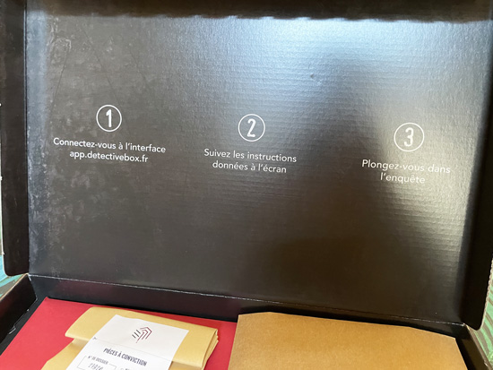 Répartie en 3 box, livrées de ce fait sur 3 mois, la Détective Box vous plonge dans une enquête criminelle que vous devez résoudre.