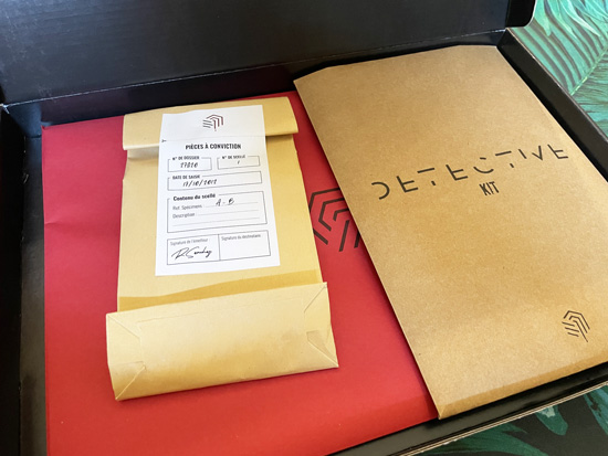 Lorsque l’on ouvre une Détective Box, on trouve à l’intérieur tout le nécessaire pour réaliser les objectifs de la box. Car, en effet, chaque box présente un ou plusieurs objectifs à réaliser pour la terminer. Bien évidemment, l’objectif de la dernière box est de nommer le ou la meurtrière.