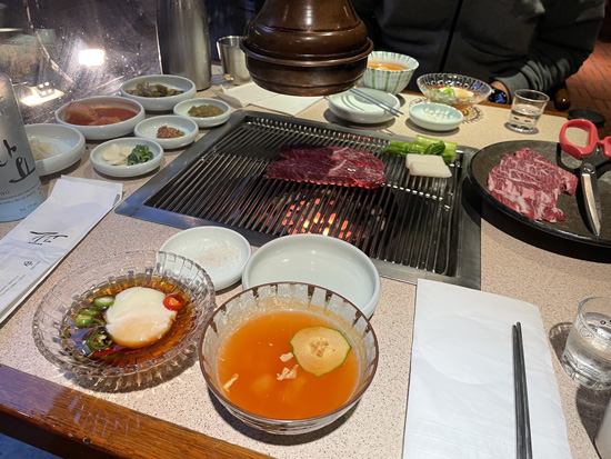 - Kukbingwan à Séoul : je termine par l’une des meilleures adresses de cette petite sélection avec ce barbecue coréen haut de gamme. De superbes morceaux de bœuf coréen, des accompagnements délicieux et une ambiance cosy dans ce bel hanok articulé autour d’une petite cour. Nous avons terminé notre séjour par ce barbecue car c’est l’un de nos repas préférés en Corée du Sud et que nous voulions marquer le coup. Nous avons pris plusieurs morceaux de bœuf ainsi qu’une bouteille de soju premium, le Hwayo, pour 152 euros à 2. Nous avons bien profité du moment en restant plus de deux heures sur place. Si vous cherchez une belle adresse, vous devriez trouver votre bonheur ici !
