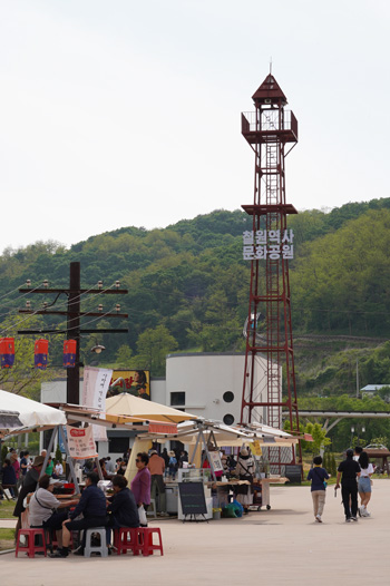 Construit autour de l’ancienne gare de Cheorwon, le parc est composé de différents bâtiments d’époque comme la poste, la pharmacie ou encore le cinéma.