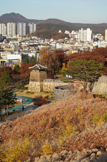 Étendue sur presque 6km, la forteresse de Hwaseong est composé de plusieurs portes, dont la plus emblématique Changryongmun à l’est de la forteresse, de tours de guet, de postes de commandes et d’autres constructions à visée défensive.
