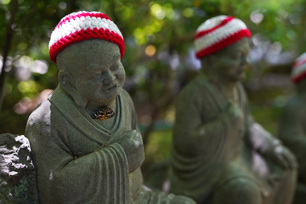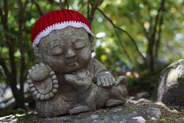 En passant la Niomon Gate, nous avons le choix : continuer tout droit et commencer à grimper les longs escaliers menant directement au Daishi-do Hall qui est consacré au fondateur du temple, Kobe Daishi ; ou prendre le petit chemin sur la gauche qui a la particularité d’être entouré de centaines de statues Rakan, qui sont toutes uniques.