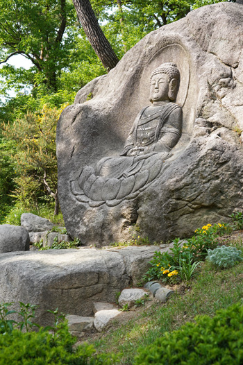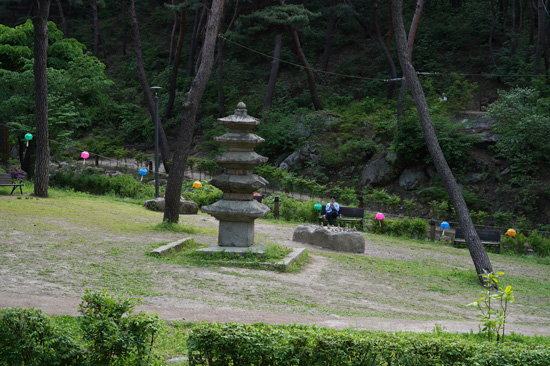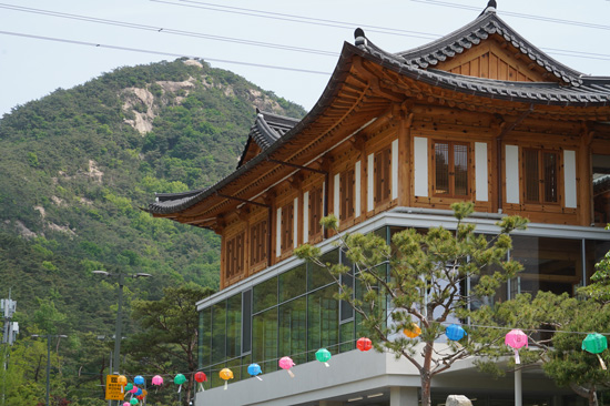 Situé aux pieds du versant sud-ouest de Bukhansan, le lieu profite d’un décor tout particulier : on est là bien loin de l’urbanisation de Séoul, les montagnes nous entourent et nous offrent une sensation de lieu hors du temps, préservé et serein.