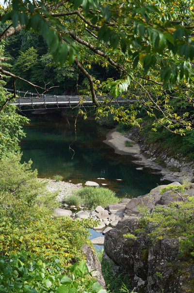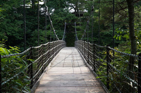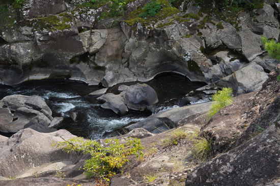 Genbikei, donc, est une gorge dans laquelle passe la rivière Iwai. Un chemin aménagé permet de faire le tour des principaux points de vue, au départ de ce parking par exemple, en passant par les ponts Chojataki, Tenkō et Goranba-bashi afin de passer d’une rive à l’autre.