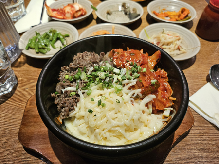D’abord pour mon amie qui mangeait son tout premier bibimbap (à 32 ans, elle !), puis pour moi qui ai pu explorer un plat que je n’avais jamais goûté, le Kimchi Cheese Bulgogi Topap, un condensé de tout ce que j’aime : du bœuf, du riz, du kimchi et du fromage, le tout bien épicé !