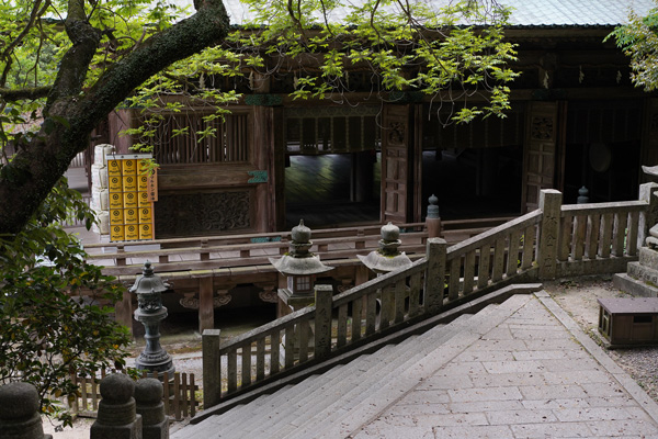 Après avoir passé la première entrée du sanctuaire, il faut grimper 263 marches supplémentaires pour arriver au premier bâtiment ; et 157 autres pour arriver au plus grand complexe, où l’on trouve les bâtiments Shoin et Ema-do.