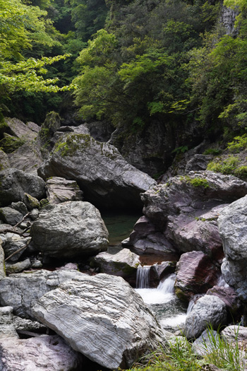 Situées à seulement 1h de route de la capitale de la préfecture de Kochi (nommée elle-même Kochi) les gorges de Nakatsu sont un lieu japonais méconnu. Lors de notre passage, mi-mai, il n’y avait personne sur place : le spot nous était totalement exclusif.
