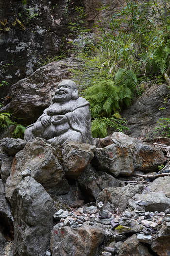 Ponctuée par les statues des 7 divinités du bonheur de la mythologie japonaise, plus ou moins cachées, on prend plaisir à tous les chercher comme une chasse aux trésors et terminer sur un grand final : la cascade Uryu.