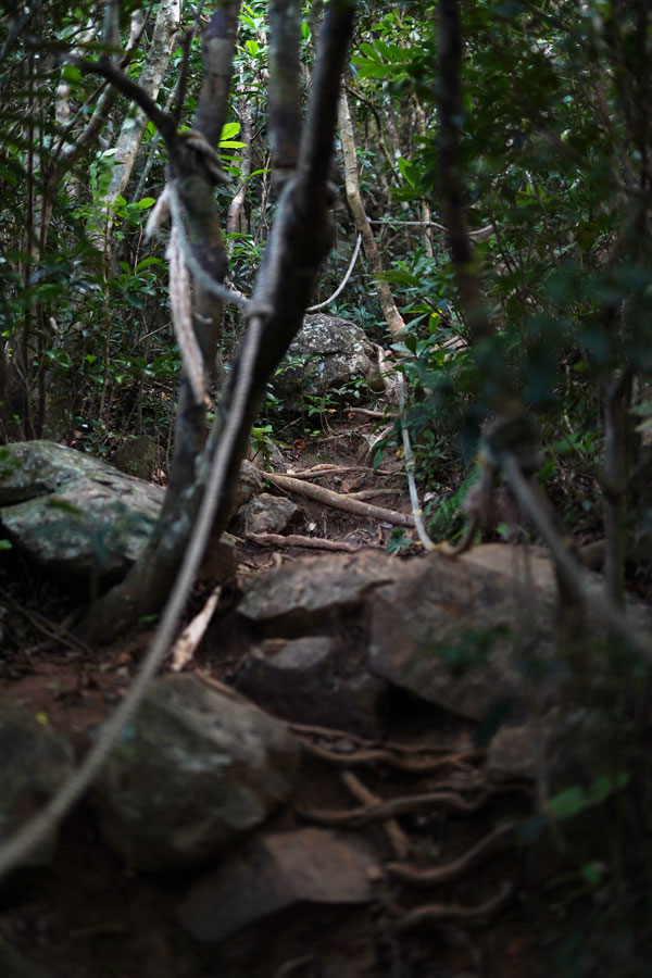 La montée est rude, très rude. Le chemin est sauvage et étroit. Il n’y a aucune indication, et encore moins d’aménagement. La seule chose que vous trouverez pour vous assurer que vous êtes sur le bon chemin ce sont les cordes mises à disposition dans les moments les plus abruptes.