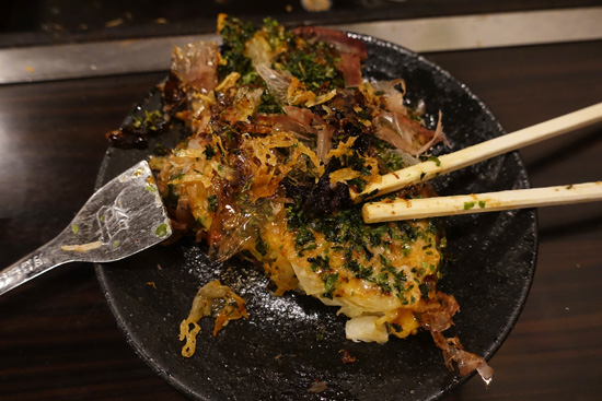 J’avais TELLEMENT envie d’un okonomiyaki au mochi que lorsque je l’ai vue dans le menu je n’ai pas su résister. Et j’ai beau y être revenue le lendemain, je voulais encore de l’okonomiyaki au mochi.