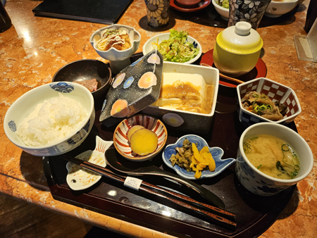 - Gallery Arita à Arita : c’est ici que nous nous sommes offert le kaiseki énoncé plus haut. Pour monsieur, un plateau autour du bœuf Imari (viande locale), et pour moi un plateau autour du tofu ; le tout accompagné d’un highball, de deux desserts et d’un thé, pour 40 euros. La petite particularité : on choisit ici la tasse dans laquelle on souhaite être servi, parmi l’incroyable collection du café, issue de l’artisanat local ! Mais ça, je vous en parle plus en détail dans mon article dédié à Imari et Arita (publication à venir).
