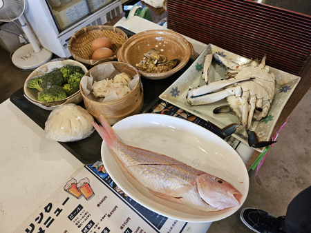 - Musigamaya à Obama Onsen : sûrement LE restaurant de cette sélection ! Situé au pied du Mont Unzen, sont ici cuits à la vapeur des sources thermales poissons, viandes, crustacés et légumes. C’est le onsen-mushi que je citais plus haut. Rien que pour l’expérience, je vous le recommande. J’étais comme une enfant à Noël : un large choix, des produits frais et une cuisson des plus atypiques. C’était à la fois amusant et délicieux ! C’est ici que nous avons eu la note la plus élevée, notamment à cause du crabe : un peu plus de 45 euros à 2.
