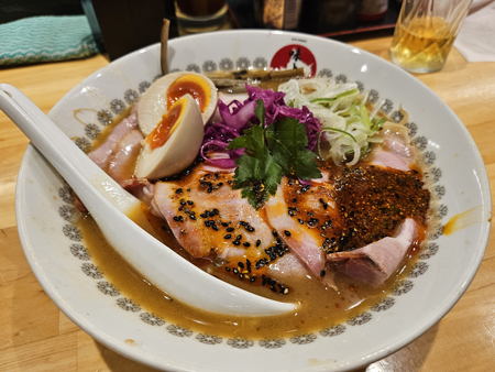 - Yossy à Kumamoto : et je termine cette sélection par le même plat avec lequel je l’ai commencé, un ramen ! Mais pas n’importe lequel. On oublie le tonkotsu, spécialité régionale, ici c’est un ramen d’Hokkaido que nous avons dégusté. Très bien garni (on apprécie le soin apporté au visuel !) et assez épicé (il existe aussi en version non spicy), c’est une adresse que je vous recommande fortement si vous êtes dans le coin. Pour ma part, si je reviens par Kumamoto, je m’y arrêterai pour goûter la version non épicée. Comptez 31 euros pour deux ramen, un riz chiar su et un highball.