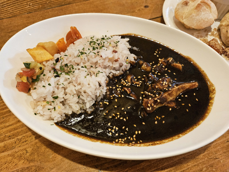 - Café Nord à Itoshima : voici une adresse bien originale. Nous sommes tombés dessus par hasard, en cherchant désespérément un restaurant où manger à une heure où tous semblaient fermer. C’est dans une ambiance rétro américaine que nous accueille la propriétaire très heureuse de voir des occidentaux passer par chez elle. Au menu : un curry tout noir, légèrement sucré, tout en étant épicé. Atypique et très bon ! Nous en avons eu pour 17 euros pour deux entrées et deux currys.