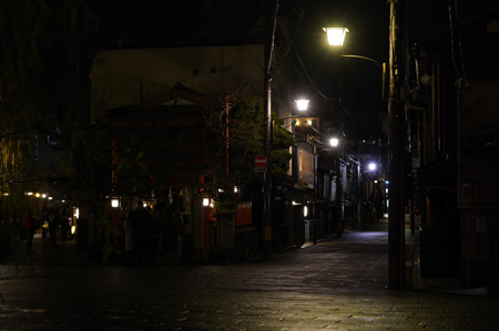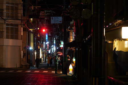 Nous sommes donc doucement partis, à l’aveugle, dans les rues de Kyoto avec pour idée de fêter minuit dans le temple qui sera sur notre chemin à ce moment-là. Nous avons ainsi rejoint l’enceinte d’un petit temple de quartier, dont je ne sais plus le nom, qui profitait d’une ambiance plus intime.