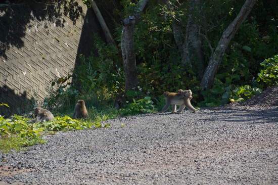La région du Tohoku est une partie peu peuplée et peu touristique du Japon. La nature y est prédominante et, de fait, la faune qui s’y abrite y est bien développée. Il est ainsi très probable d’y rencontrer des singes à l’état sauvage et… des ours ! Pour les singes, nous en avons croisé par 3 fois : une première fois, ils étaient 2 à se chamailler au bout milieu d’une route à 4 voies où notre présence semble les avoir étonnés (et, en effet, on n’y a pas vu d’autres voitures) ; la seconde fois, ils étaient plus d’une dizaine en bord de route, en train de chiller au max ; et la troisième fois, ils étaient quelques-uns dans des arbres au-dessus de la route, et l’un d’entre eux est tombé devant la voiture. Pour la première et la troisième rencontre, le freinage d’urgence a été obligatoire ; en d’autres termes : même si vous vous croyez seuls sur la route, un singe peut débouler de nulle part !