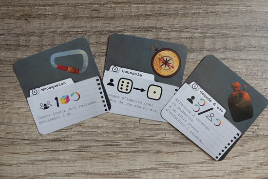 • Des cartes outils : chaque joueur reçoit une ou deux cartes outils (en fonction du personnage incarné) qui ont des « pouvoir » spéciaux.