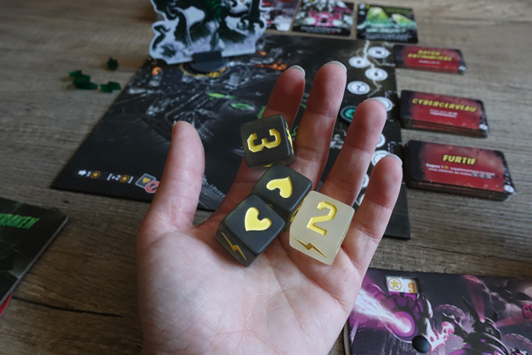 Mais un bon jeu ne repose pas que sur son matériel. La mécanique est extrêmement importante, et vous l’aviez compris avec mon test sur Sushi Roll : j’adore les jeux de dés. Alors difficile d’être déçue avec King of Tokyo Dark Édition puisque tout repose justement sur des lancés de dé.