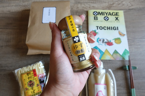 - Un pot de 25g de poudre de Yuzu Cédrat cultivé dans la ville de Motegi. Moi qui adore le yuzu, je ne peux qu’être heureuse de ce produit !