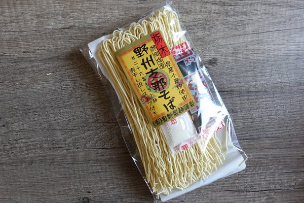 - Un paquet de 80g de nouilles chinoises fabriquées à partir d’une farine provenant de la préfecture de Tochigi. Leur particularité : une pâte qui résulte d’un mélange entre cette farine et du kansui (une solution qui régule le pH de la pâte et donc son acidité), ce qui donne une texture légère nommée « tsuru-tsuru« .