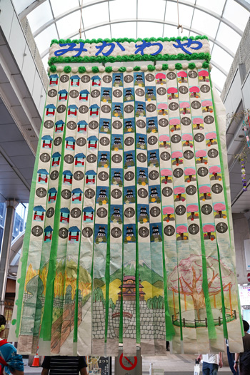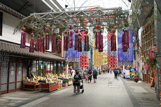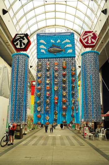 En toute honnêteté, nous n’avons pas trouvé d’intérêt particulier à cette rue commerçante qui s’adresse bien plus aux locaux qu’à des touristes comme nous. Sa seule attractivité, pour nous, c’étaient ses décorations typiques de Tanabata, la fête des étoiles, qui étaient encore en place. Une belle occasion de découvrir ces créations que nous n’avons pas pu voir ailleurs, étant arrivé au Japon après la date officielle du festival.