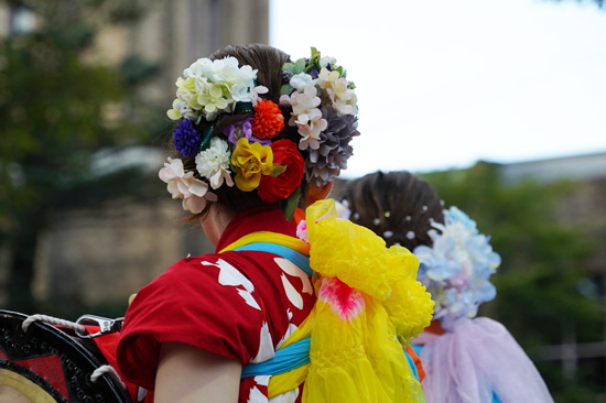 Le défilé prend place dans la grande rue Chuou au niveau du bâtiment public de la préfecture d’Iwate, à 18h pétante (pensez à venir plus tôt pour avoir une bonne place !). C’est alors parti pour 3 heures de défilé non-stop où se succèdent des milliers de chanteurs, danseurs et musiciens.