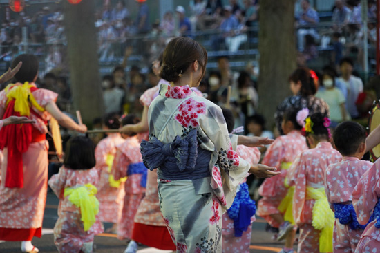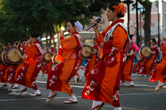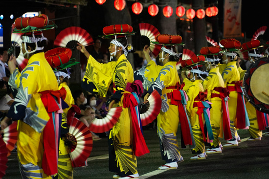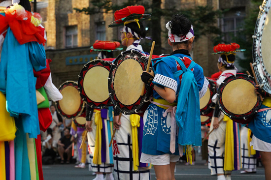 Pendant la dernière demi-heure, le festival change de format : le défilé s’arrête, et des groupes se forment à différents endroits de la grande rue Chuou. Les spectateurs se positionnent alors autour de ces groupes qui, l’un après l’autre, offrent un spectacle plus intime.