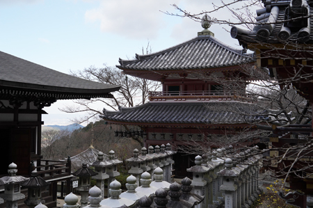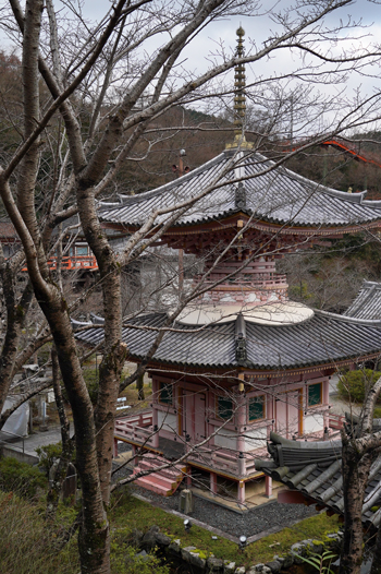 Outre les nombreuses statues que l’on y trouve, le Tsubosaka-dera se distingue également par ses différentes bâtisses, et notamment ses pagodes en bois.