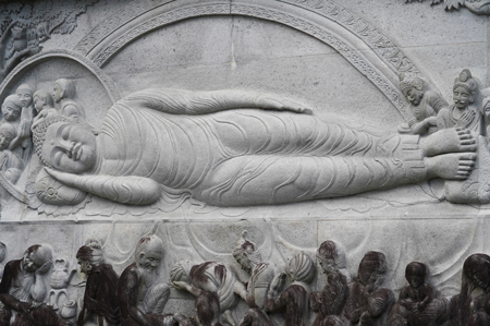 Et sa représentation la plus célèbre, c’est celle du « Bouddha de la fleur de cerisier » : le grand Bouddha qui trône au sein du temple voit son visage entouré de milliers de pétales de cerisiers qui s’étalent tout autour tel un nuage.