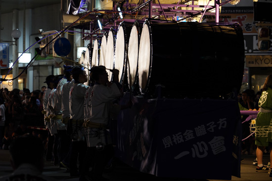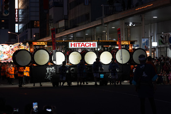 C’est dans les grandes rues Shinmachi-Dori et Kencho-Dori que le festival bat son plein. En arrivant, peu de doute sur l’endroit : tout le monde s’y dirige, à la recherche d’une place pour admirer les chars. Le défilé démarre en même temps que le soleil commence à se coucher. On entend alors au loin des bourdonnements, le son devenant de plus en plus fort à mesure que les tambours avancent dans la rue.