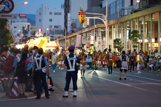 Le lendemain, nous sommes revenus pour profiter de la journée à Aomori, assister au défilé de jour et au feu d’artifice de nuit. Le défilé de jour a forcément bien moins de charme que celui de nuit, mais la fréquentation étant bien moindre, il y a plus de place pour profiter du spectacle.