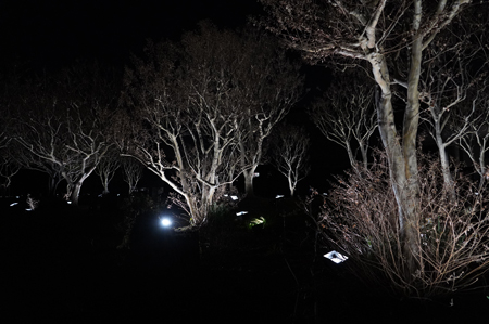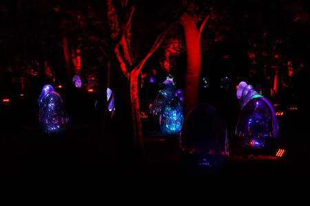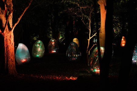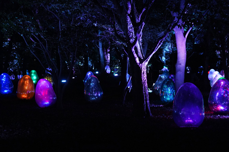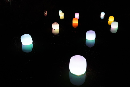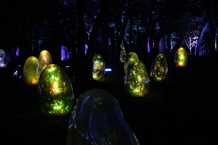 Tout se passe en extérieur, et de nuit : le chemin, que l’on suit dans un sens prédéfini, traverse différentes zones à thème. Si certaines œuvres sont permanentes, comme les œufs lumineux du jardin de camélias ou les lampes flottantes sur le lac Oike, d’autres sont saisonnières. Vous l’aurez donc compris : chaque visite est différente !