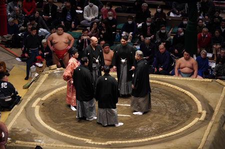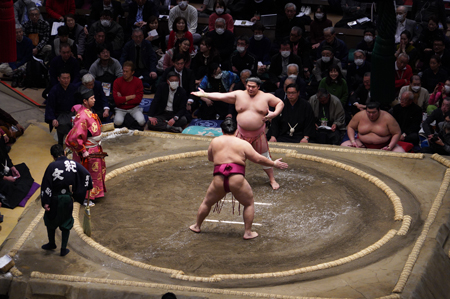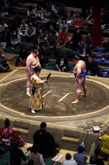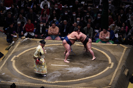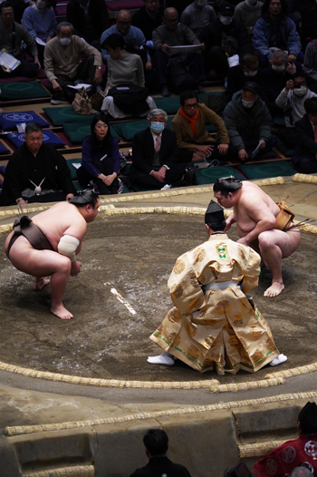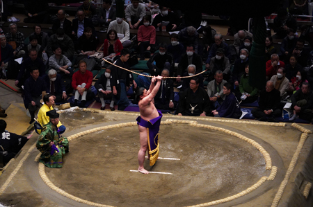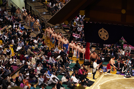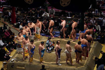 Un honbasho (le tournoi de sumo officiel) s’étale sur 15 jours consécutifs, de 8h30 à 18h. Le niveau des lutteurs qui combattent dépend de l’heure de leur passage : le matin, ce sont les plus jeunes recrues, en fin de journée, de 16 à 18h, ce sont les grands champions.